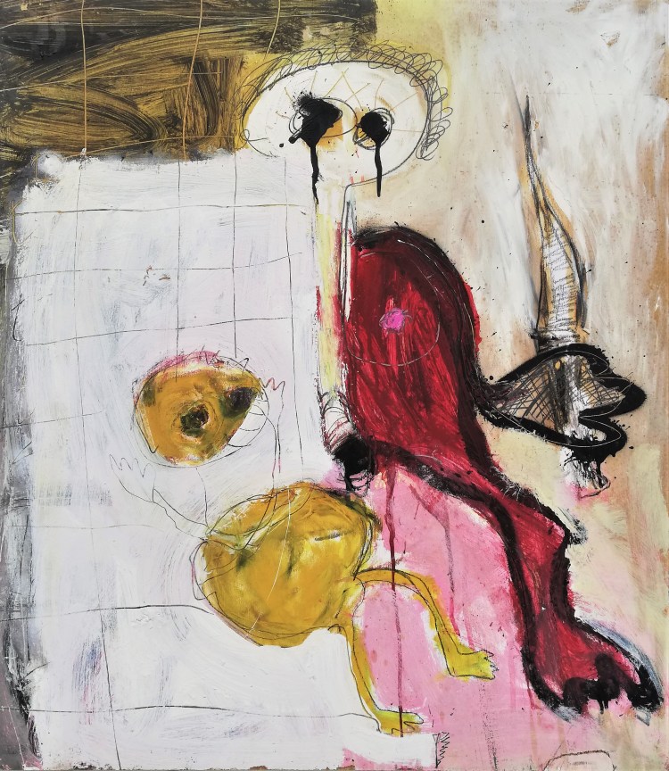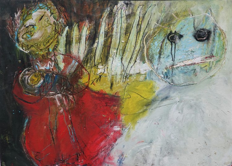 Mischtechnik auf Spanplatte